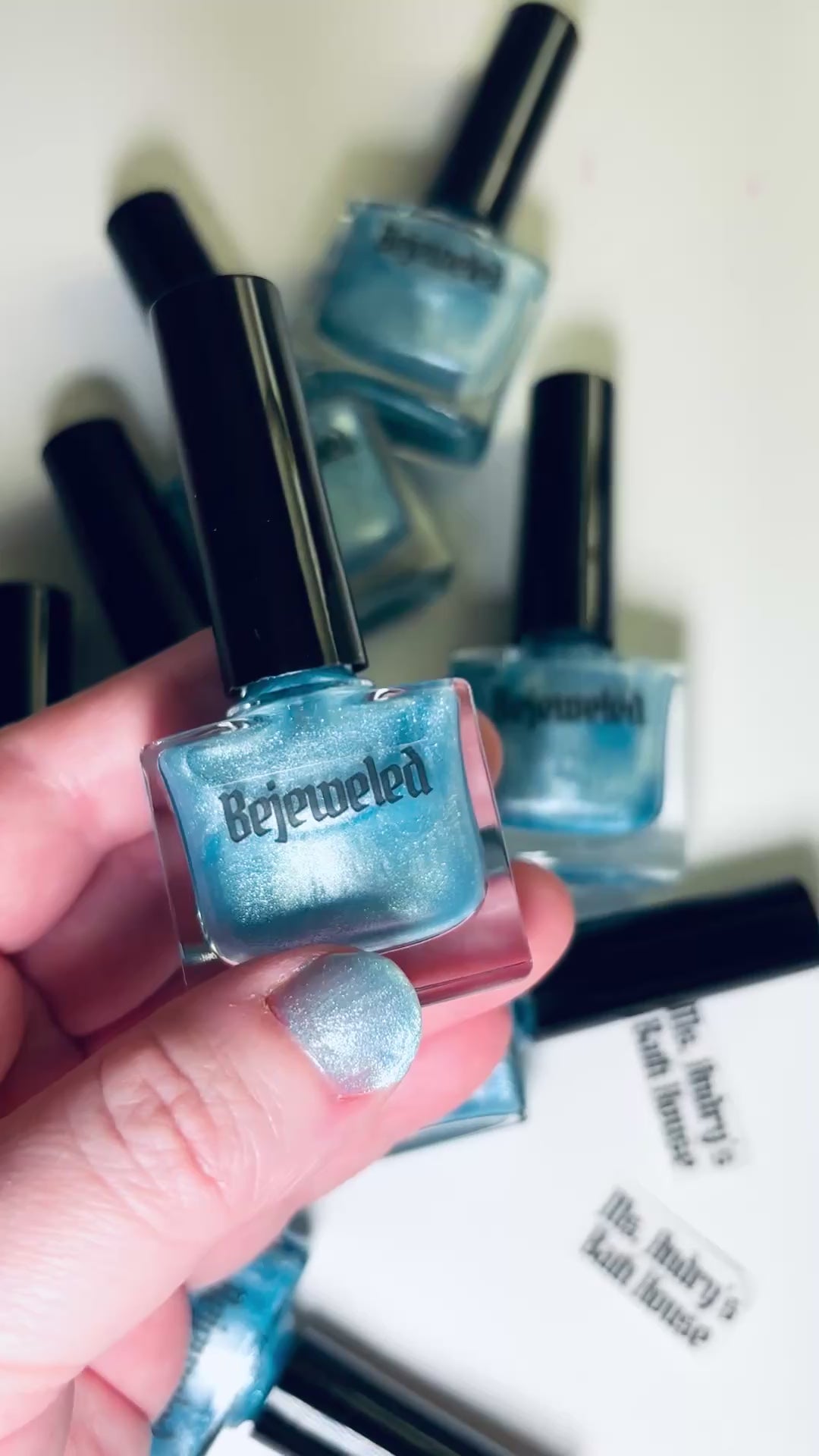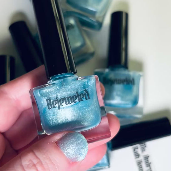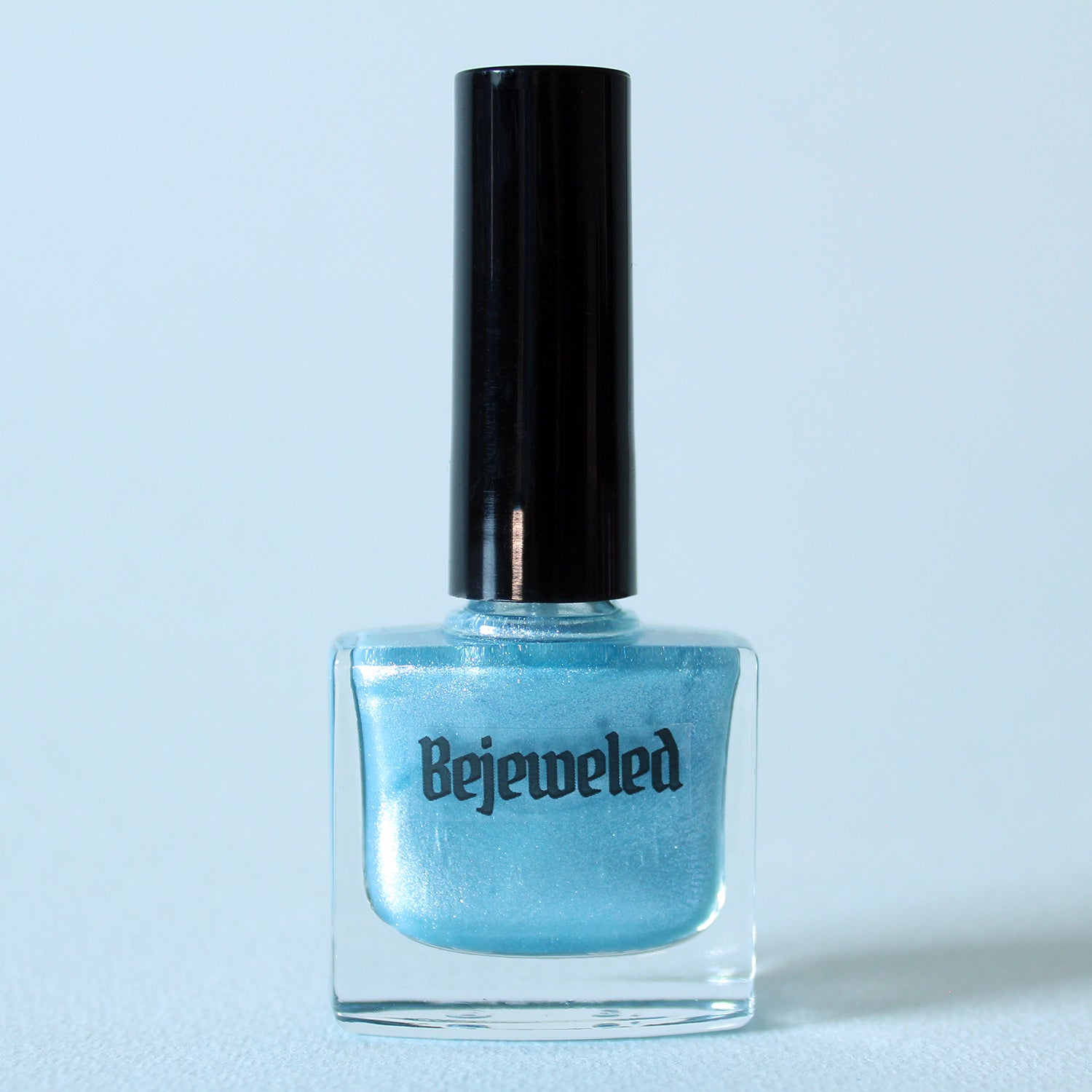 Make the whole place shimmer! Bejeweled is an ice blue polish with tiny silver white sparkles.