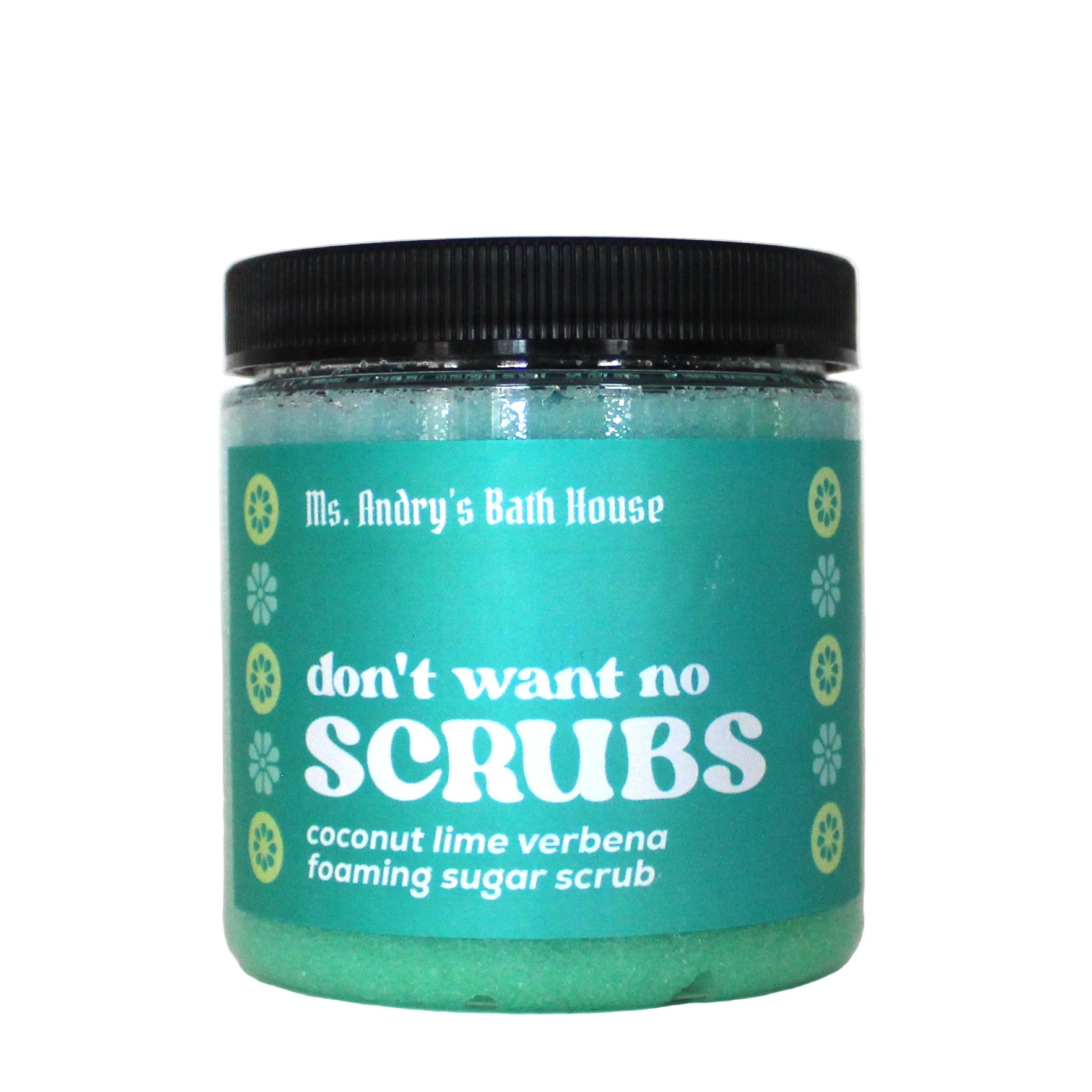 Don't Want No Scrubs is back! Coconut Lime Verbena sugar scrub in the classic Ms. Andry scrub formula. A cleanser and exfoliator in one, DWNS gently buffs away dry skin while doubling as a cleanser. It leaves your skin fresh, smooth, and clean. Never oily or heavy.