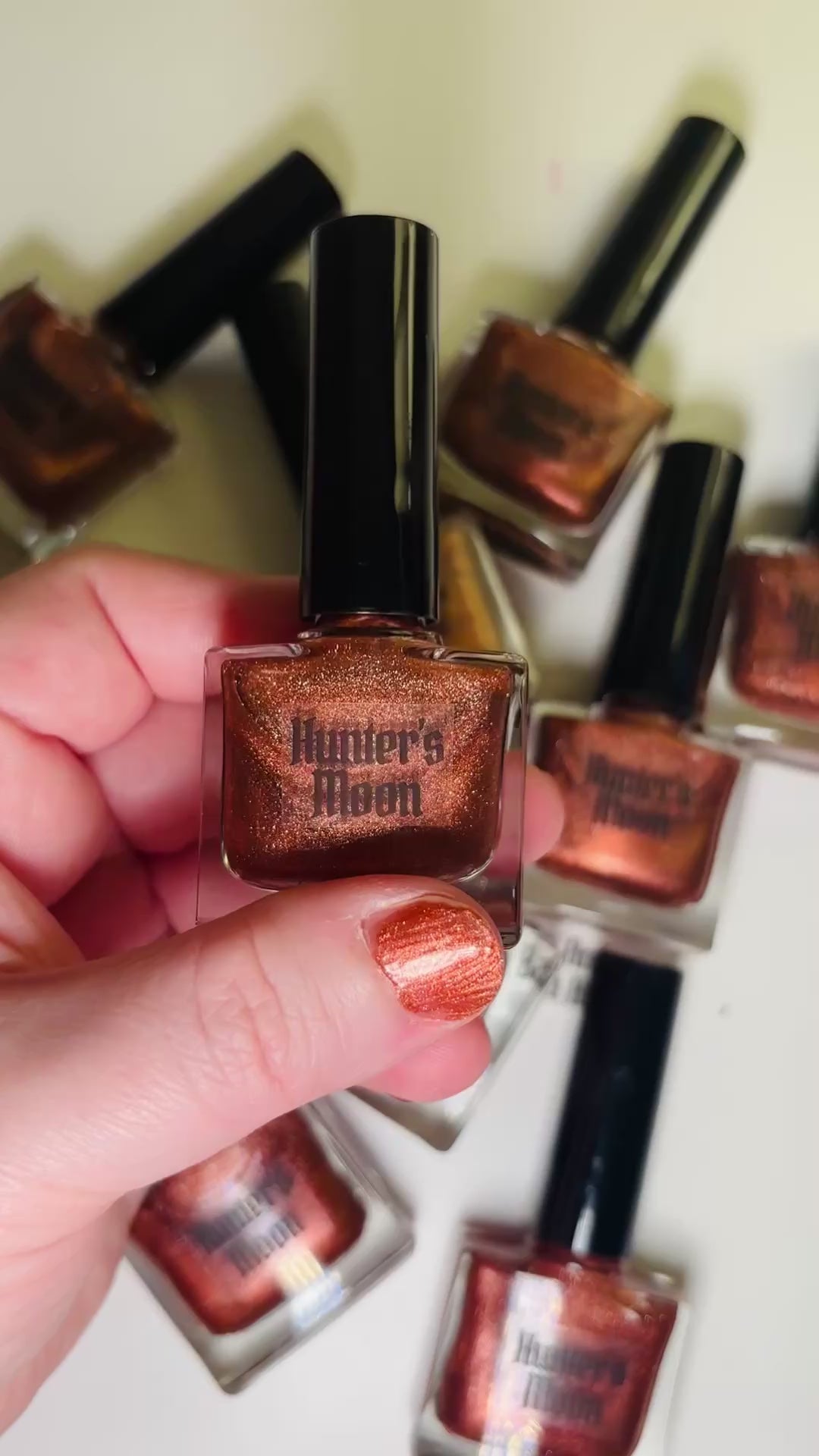 Hunter's Moon nail polish is a super shimmery bronze copper polish, perfect for witchy autumn.