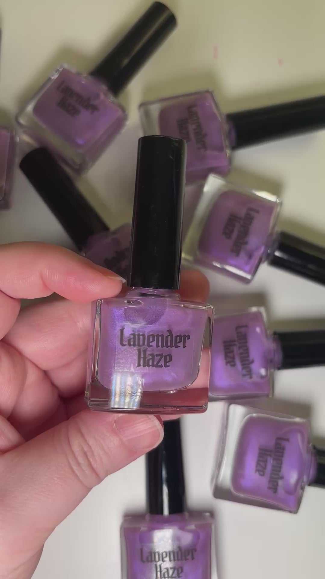 I feel it creepin' up on me! Lavender Haze nail polish shifts subtly from a shimmery light pink-lavender to a violet iridescent highlight. Use a single layer as a topper for a darker shade, or do 2-3 solo layers for a glowy pastel vibe.