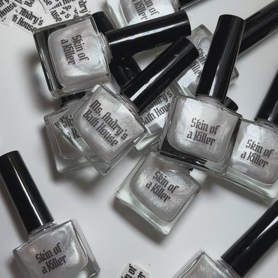 This is the skin of a killer, Bella. Skin of a Killer nail polish is a super shimmery pale white polish.